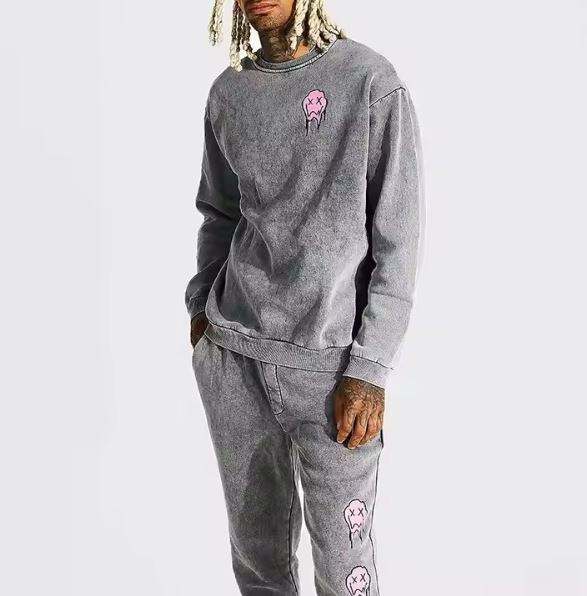 Chándal lavable con ácido serigrafiado Último precio fabricante pakistaní chándales lavados con ácido tallas grandes de alta calidad para hombre