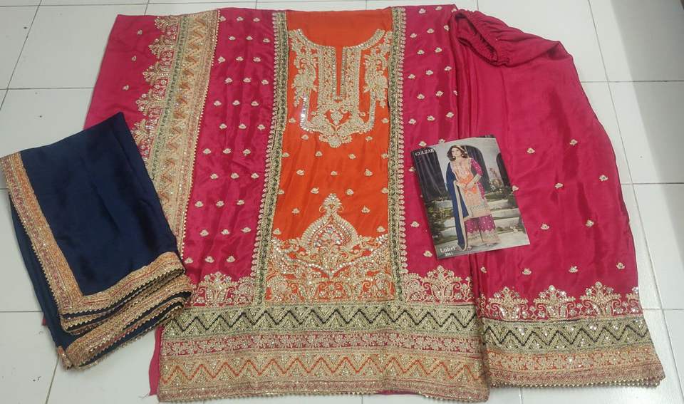 TELA DUPATTA:Primium Multi colores Chinon con el trabajo