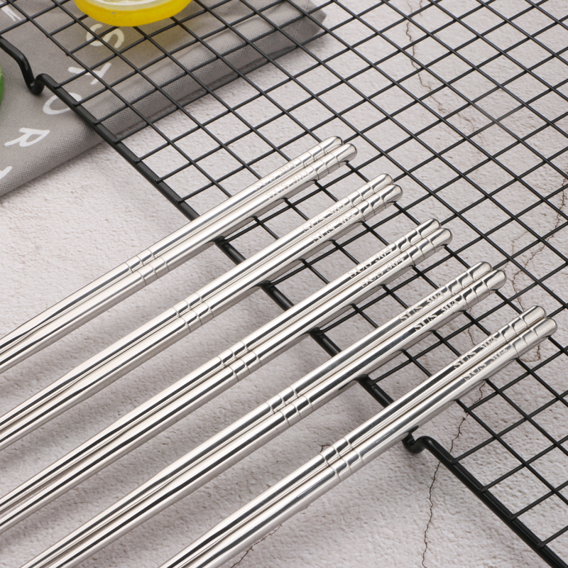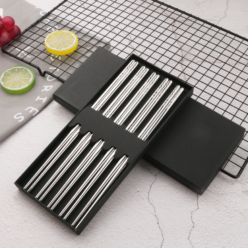 Palitos Chinos reutilizables con logotipo personalizado palillos 304 acero inoxidable redondo estilo chino japonés palillos caja de regalo boda