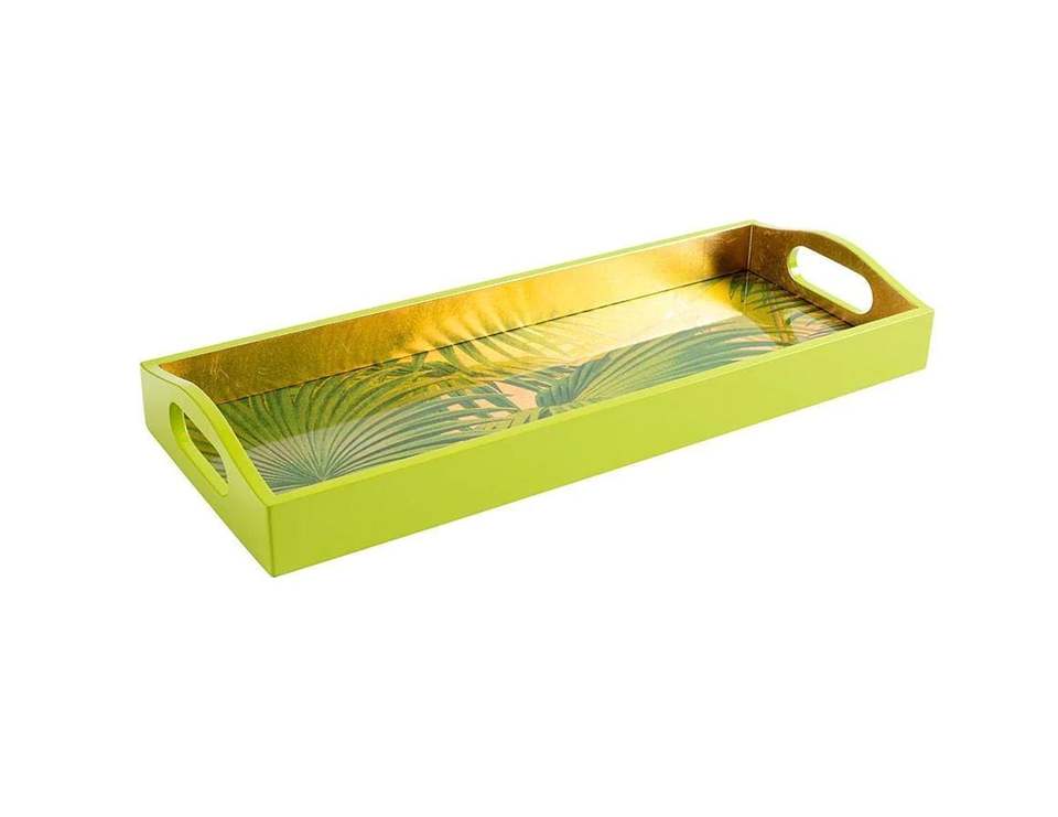Product Name:Palm Fronds Lacquer Bar Tray in Gold - 1 Each