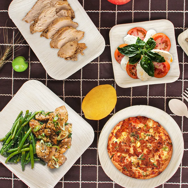 Platos desechables de hoja de palma-100% Platos y cuencos de palma de areca natural biodegradable-Eventos escolares con patrón de plantas ecológicas