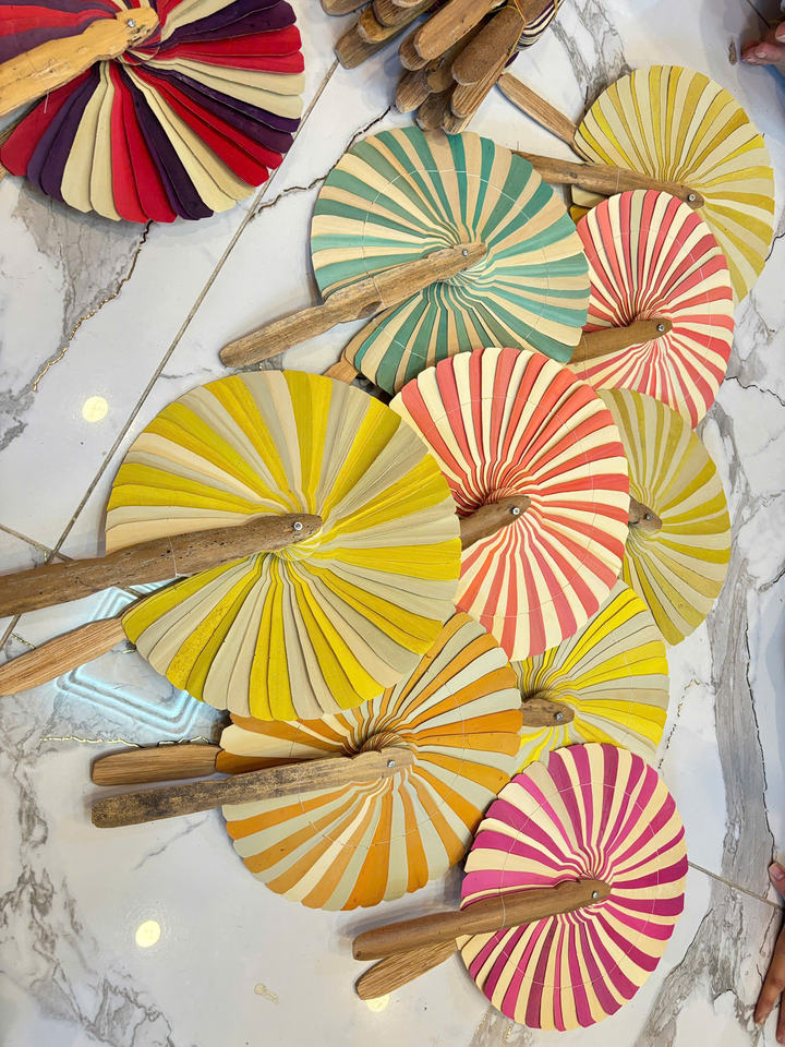 Abanico de hoja de palma Artesanía tejida de Palma natural para Hotel Resort y decoración de bodas Vietnam 99 Gold Data - Ms Violet