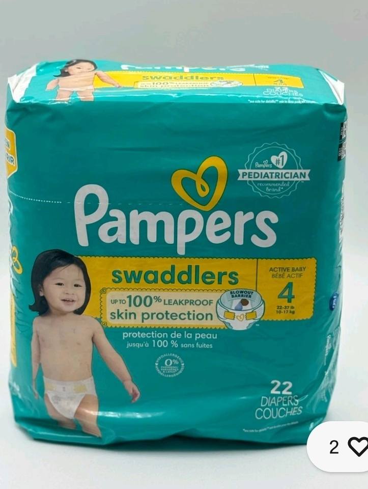 Pañales desechables para bebés activos Pamper Swalddlers, 22 unidades, tamaño 4, 16-18 libras, pulpa de pelusa impresa, protector de fugas transpirable suave