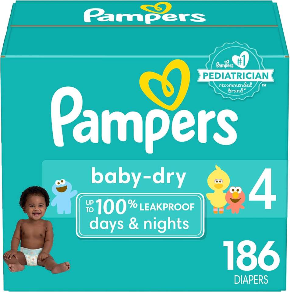 Pañales Pampers Baby Dry-Tamaño 4, suministro para un mes (186 unidades), pañales desechables absorbentes