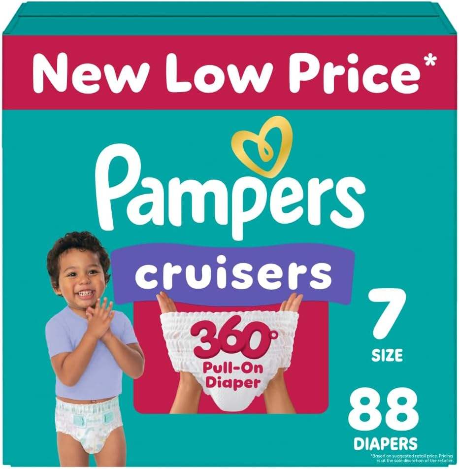 Pañales Pampers-Cruisers 360-Tamaño 7, 88 unidades, a prueba de bebés hasta 100% Pañal extraíble a prueba de fugas