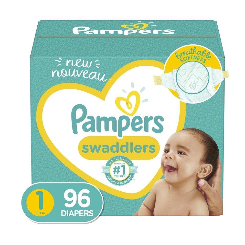 Pañales Pampers Swaddlers suaves y absorbentes para recién nacidos XXL tamaño 1 paquete de 96 unidades para bebés y adultos producto verde