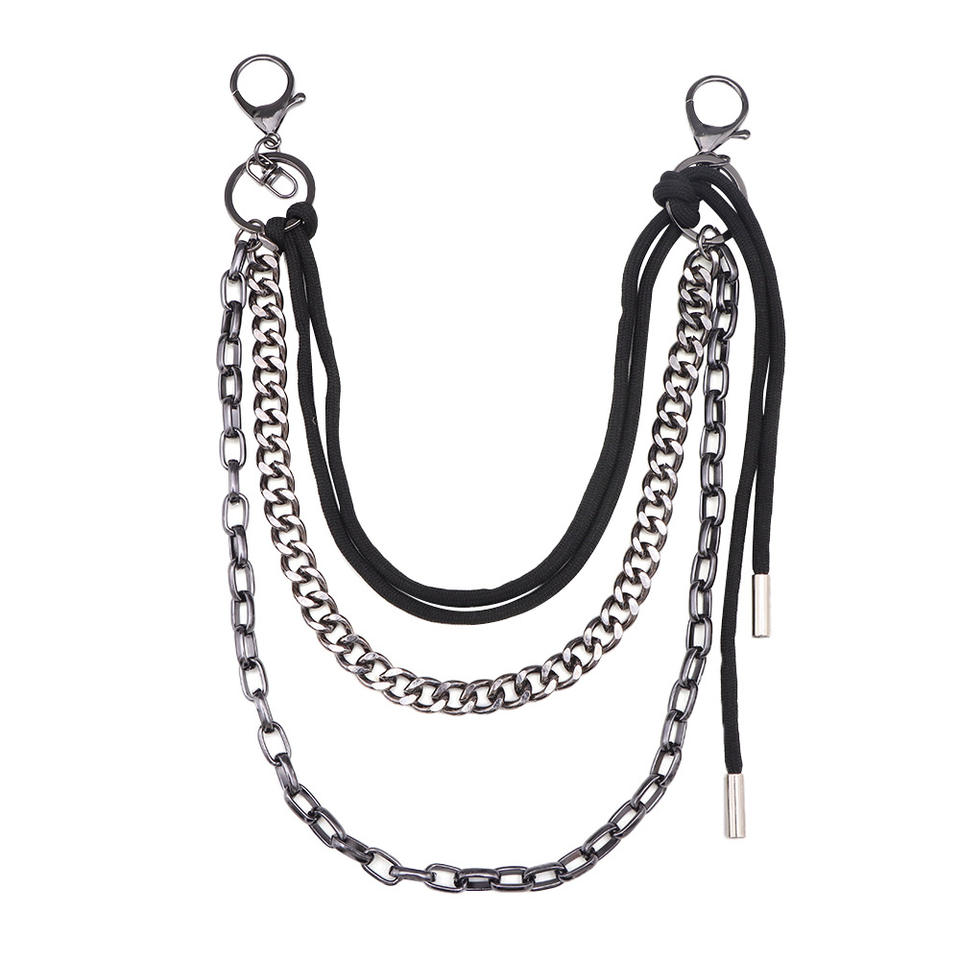 Cadena para Pantalones, Cuerda Negra con Cadena de Metal, Estilo Hip Hop, Cadena para la Cintura para Jeans, Accesorio de Moda