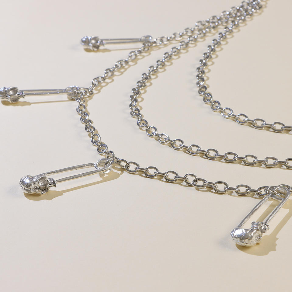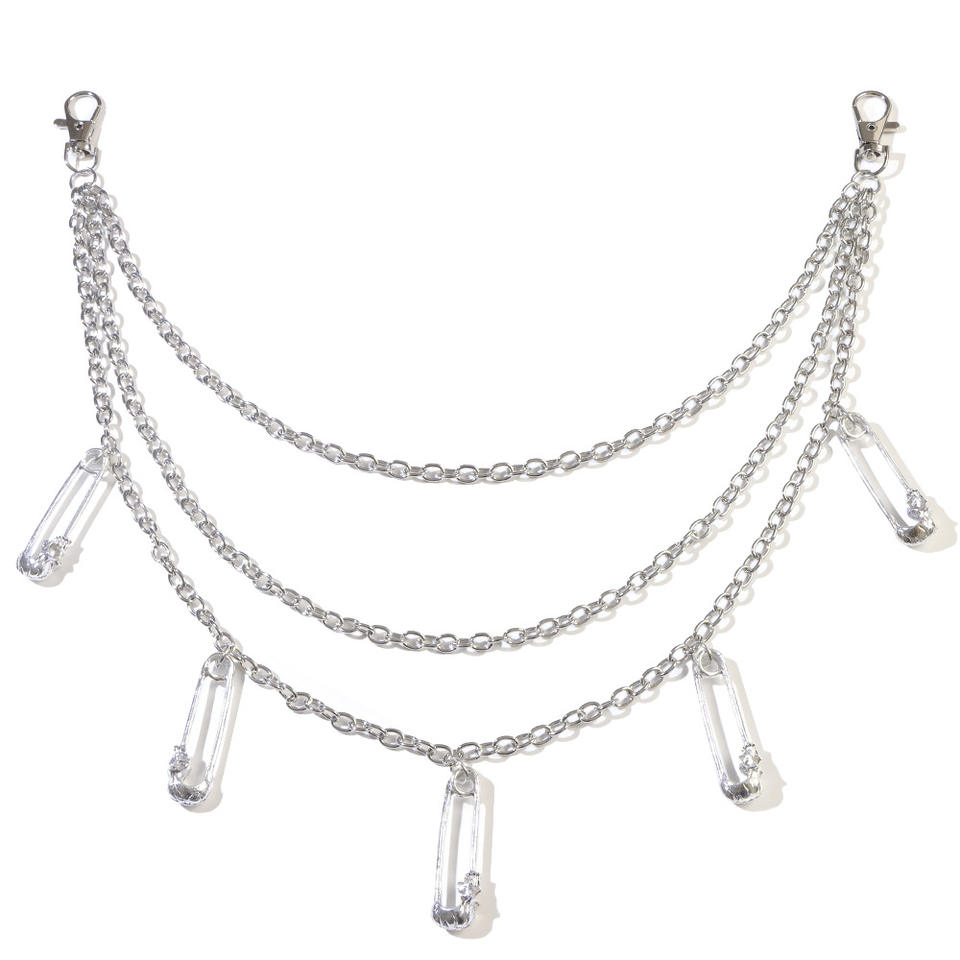 Cadena para Pantalones Multicapa de Metal, Cadena de Cintura para Hip Hop y Danza Urbana, Cadena Corporal de Moda Casual, Plata Tibetana Blanca K con Cabeza de Fantasma
