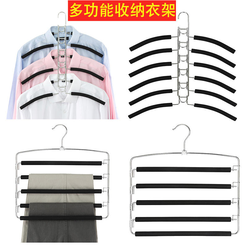 Percha para pantalones, plegable, multifuncional, de cinco capas, de espuma acolchada de algodón, estante de viaje, armario de almacenamiento, ayudante, perchas de ropa de Metal