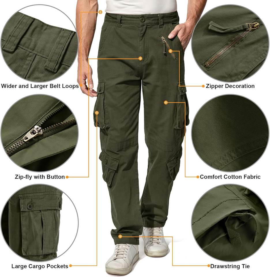 Pantalones Tácticos Wild Camo Cargo Pantalones con 8 Bolsillos Cremallera Fly Con Botón pierna recta lazo con cordón para adaptarse