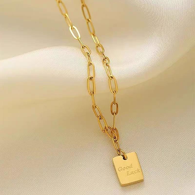 Tobilleras de cadena con Clip de papel, joyería de pie de acero inoxidable, tobilleras cuadradas chapadas en oro con amuleto de la buena suerte con letras