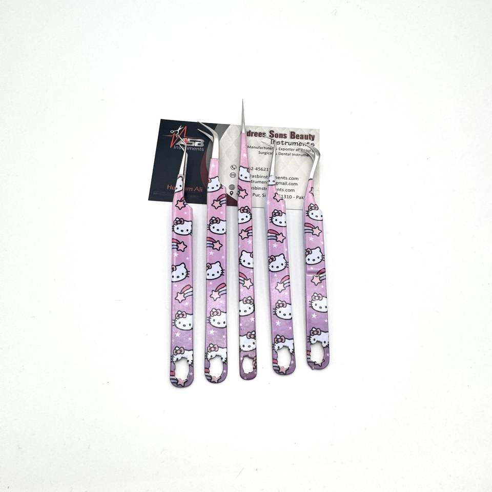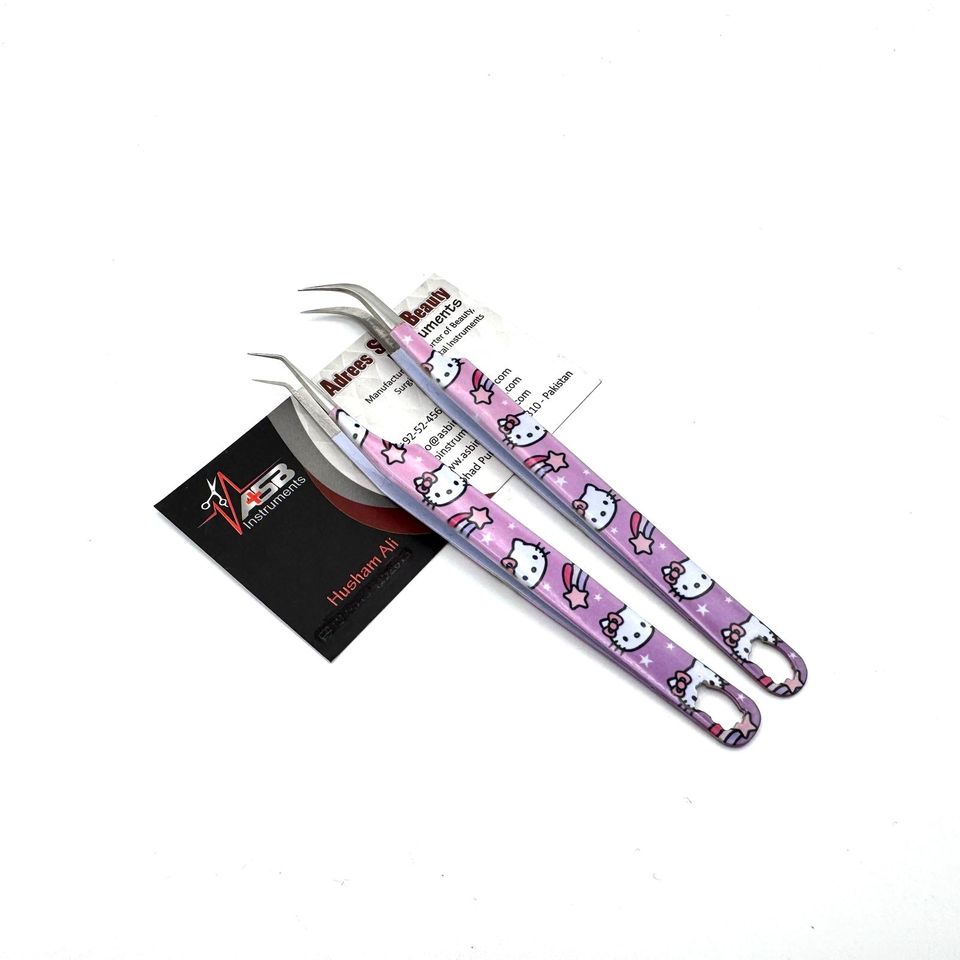 Pinzas de diseño de gatito recubiertas de papel Colección Etiqueta privada Pinzas de pestañas de acero inoxidable sostenibles Pinzas de punta de fibra de pestañas