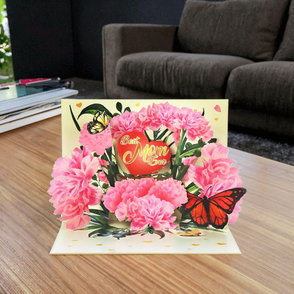 Tarjetas emergentes de flores de papel, tarjeta de ramo de flores de lirios, tarjetas de felicitación 3D emergentes para el aniversario del Día de la madre con sobre y nota