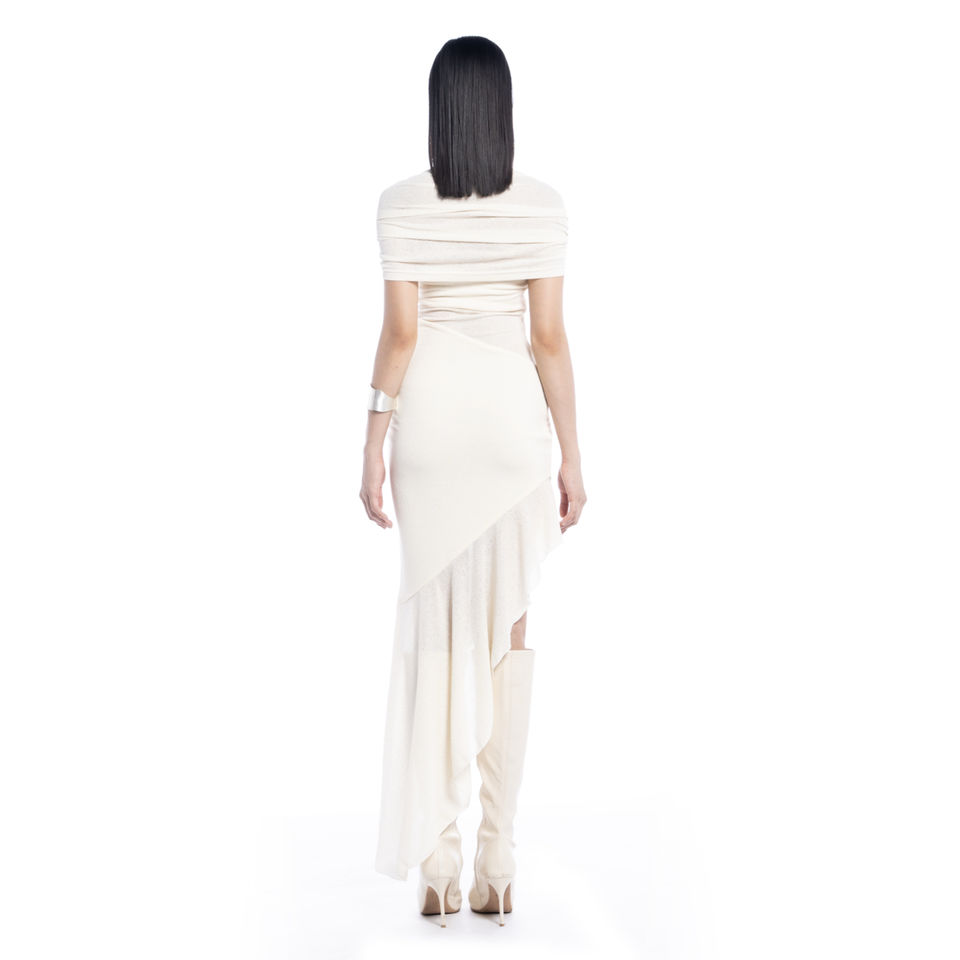 Silueta esculpida con un dobladillo alto-bajo para drama.Característica
