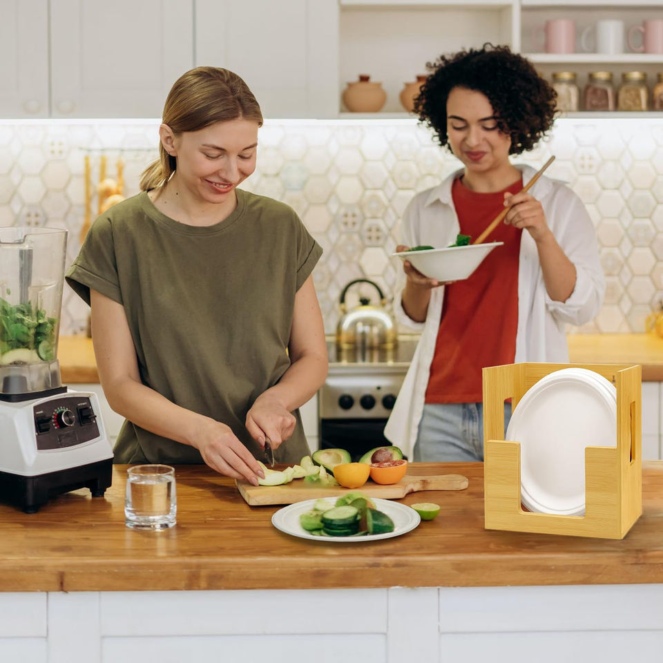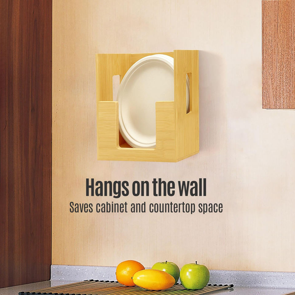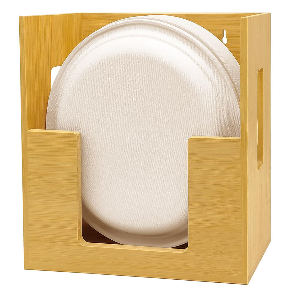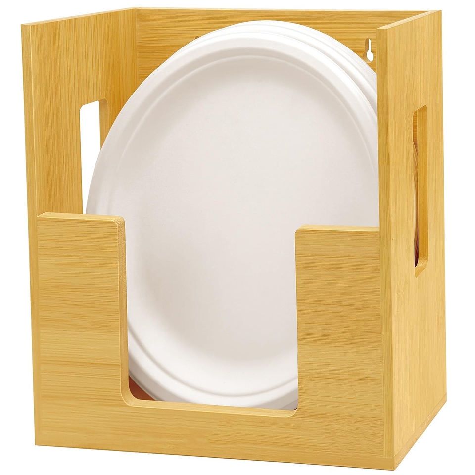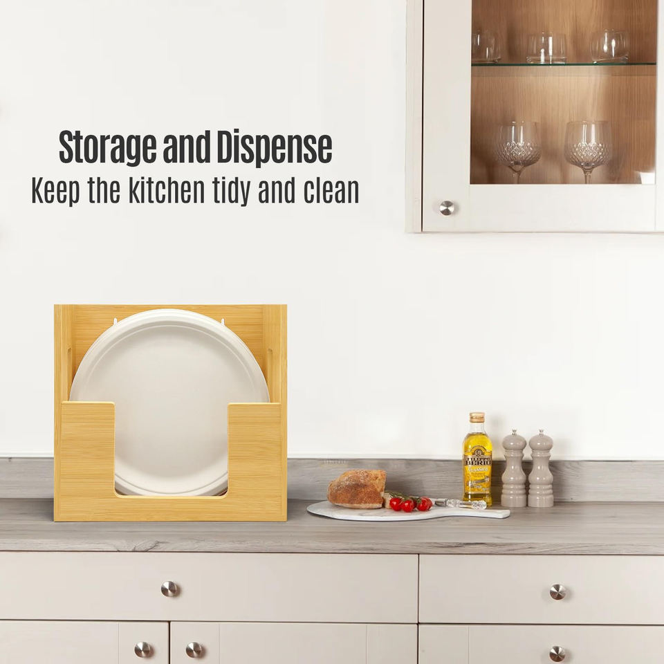 Nombre del Producto:Dispensador de Platos de Papel para Cocina - Soporte de Platos de Papel de Bambú