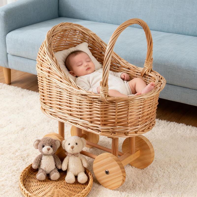 Cesta Colgante Tejida a Mano con Cuerda de Papel en Forma de Cochecito de Bebé para Guardar Juguetes y Alimentos para Niños