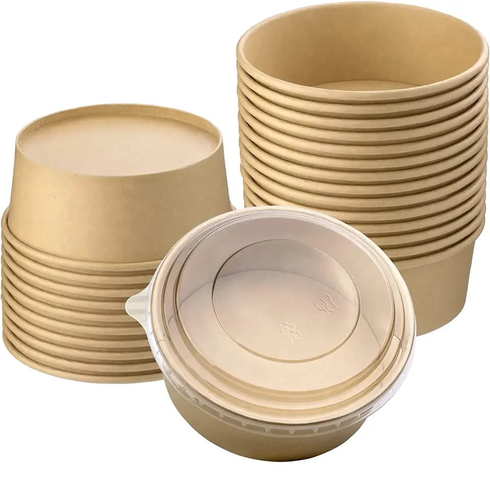 Tazón de Ensalada de Papel Desechable Biodegradable con Tapa OPS, Impresión Personalizada al por Mayor para Desayuno, Merienda, Comida Caliente o Fría
