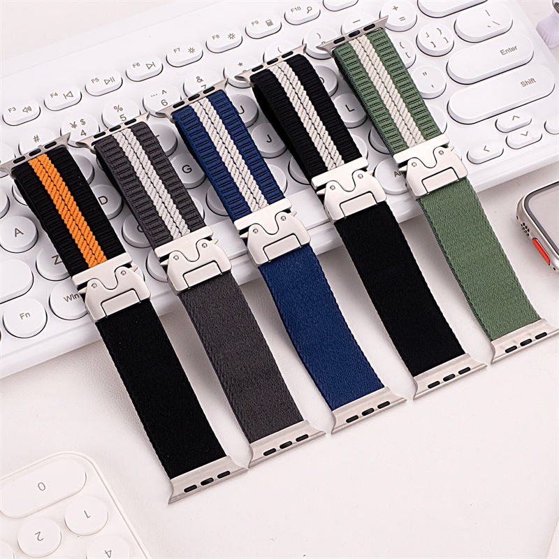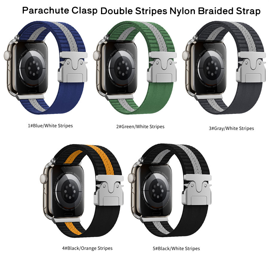 Nombre del producto:Correa trenzada de nailon elástico con hebilla de paracaídas para Apple Watch