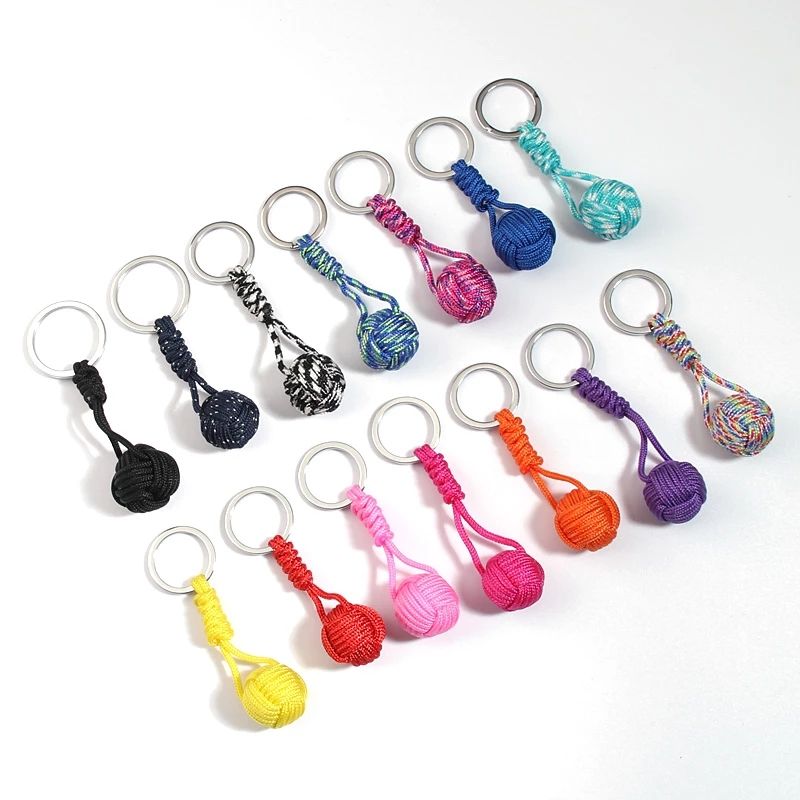 Paracaídas tejido cuerda bola llavero Paracord cordón llavero mono puño llaveros al aire libre herramienta de supervivencia joyería