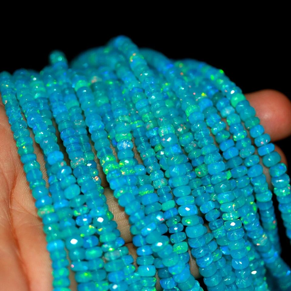 Nombre del producto:Cuentas Rondelle facetadas de ópalo etíope azul Paraiba