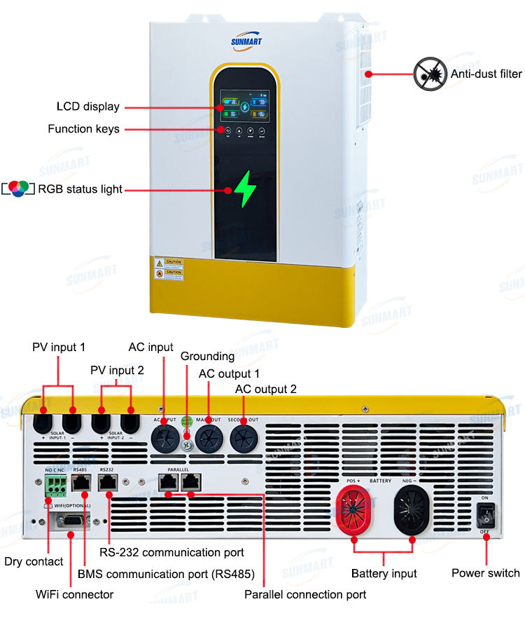 Inversor de Función Paralela de 11KW48V, Inversores Solares Híbridos, Controlador de Carga Solar MPPT con Dos Entradas de Energía Fotovoltaica