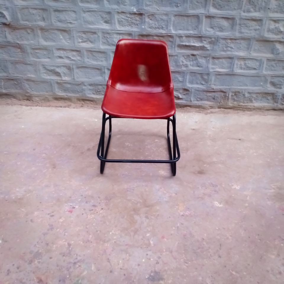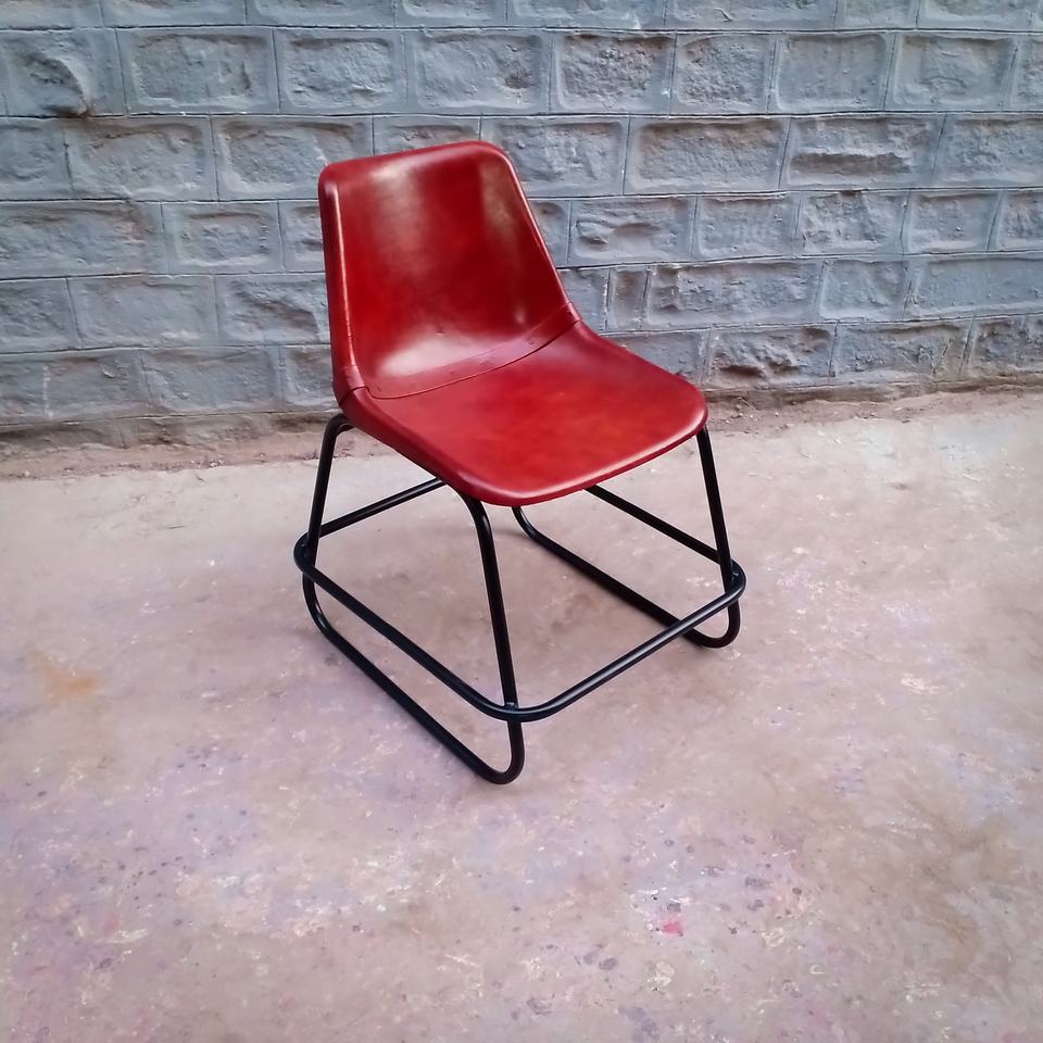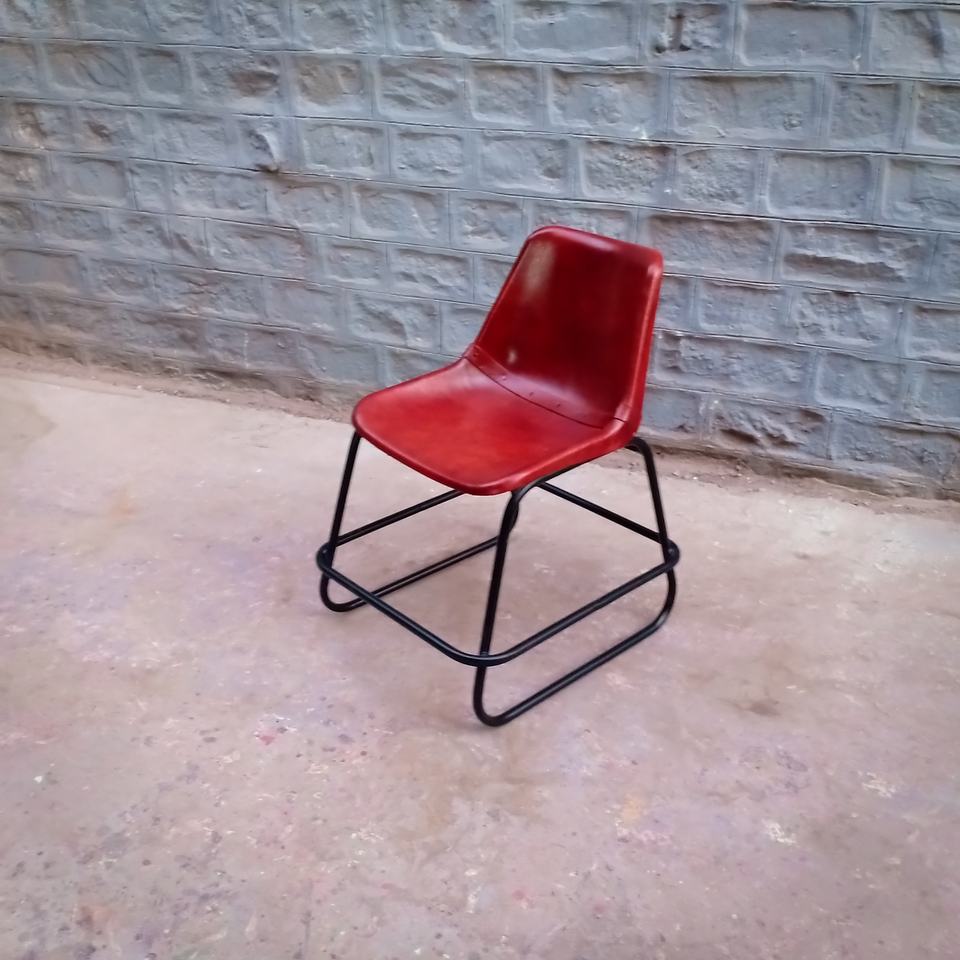Silla de Cuero Roja | Asientos Industriales Retro | Muebles de Salón con Marco de Metal Vintage, Diseño Moderno y Duradero