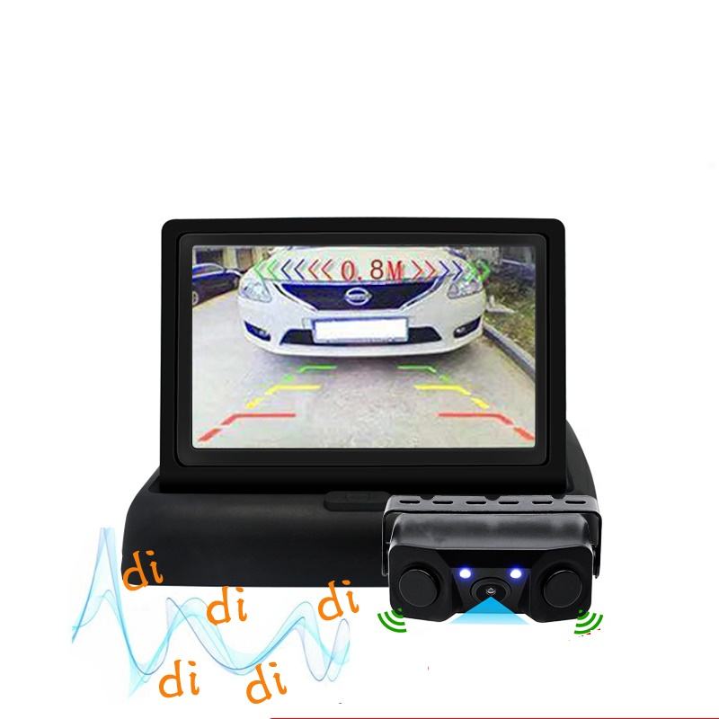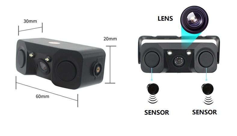 Cámara de Reversa 3 en 1 con Sensor de Estacionamiento, Cámara de Marcha Atrás con Ángulo de Visión de 170 Grados, Resistente al Agua IP67, Monitor de 4.3 Pulgadas, Resolución de 648x488, Visión Nocturna