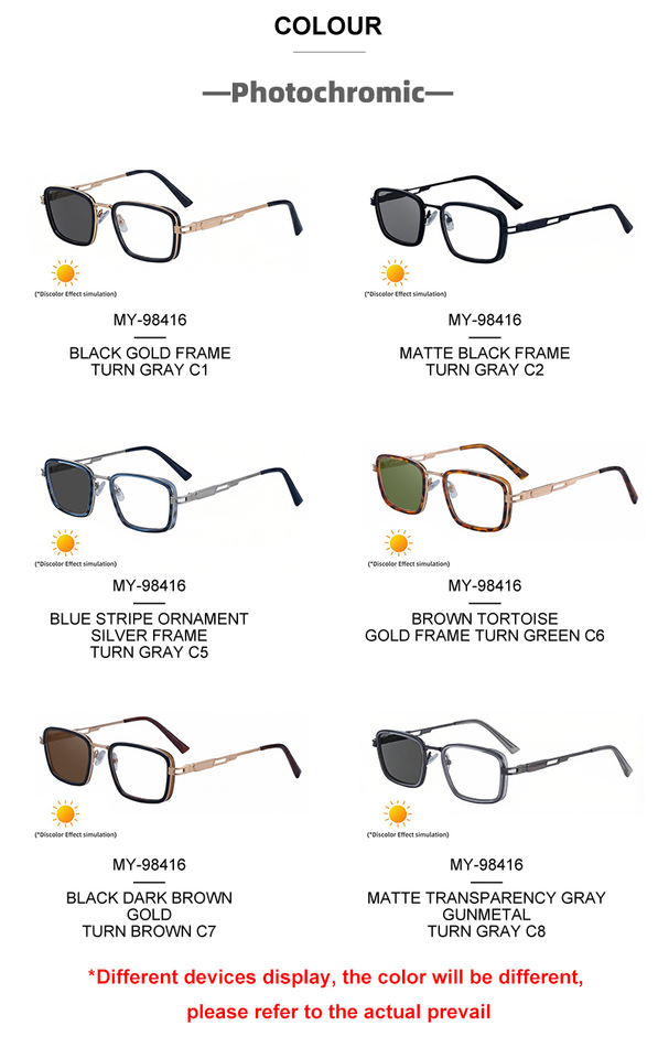 Gafas de Sol Partagas de Diseño con Logotipo Personalizado, Rectangulares, Fotocromáticas, con Bloqueo de Luz Azul y Protección UV400 para Hombre