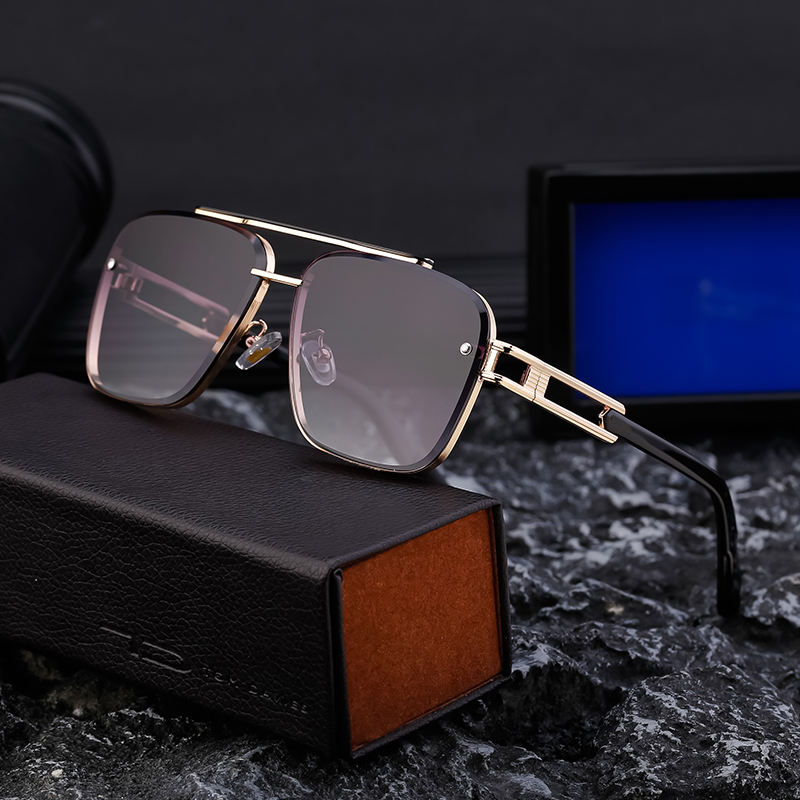 Gafas de Sol Partagas de Moda, Diseño Moderno, Logotipo Personalizado, Montura Metálica Cuadrada de Doble Puente, Protección UV400 para Hombre