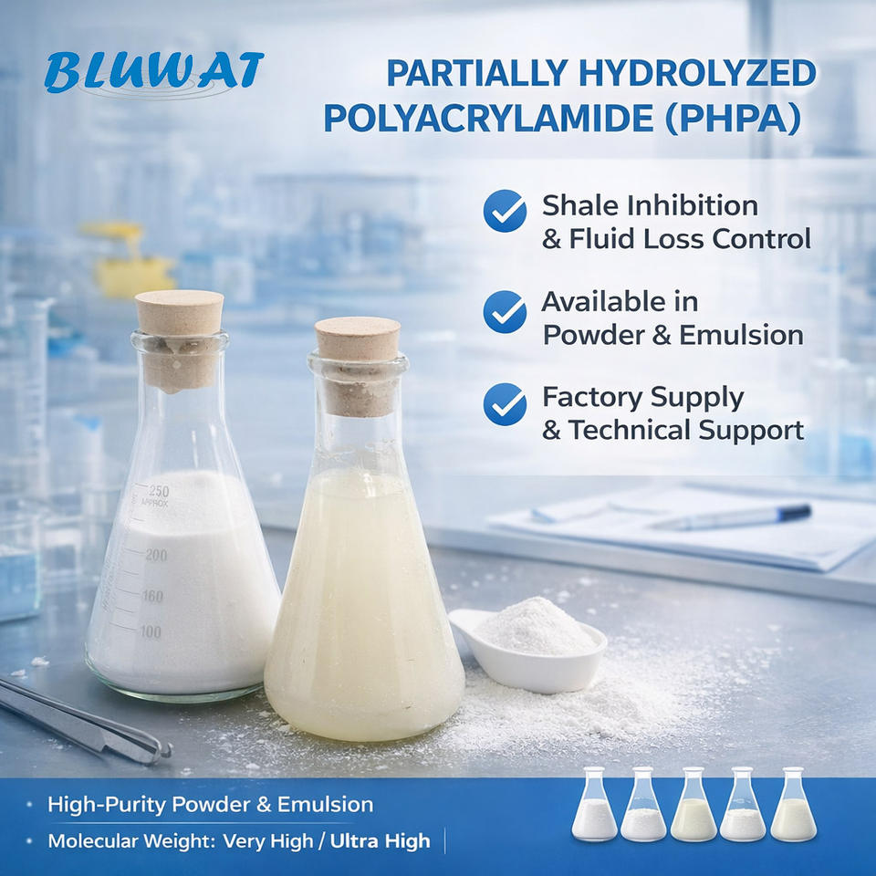 Poliacrilamida parcialmente hidrolizada (PHPA), lodos de perforación de polímero para floculante, reduce la pérdida de fluido