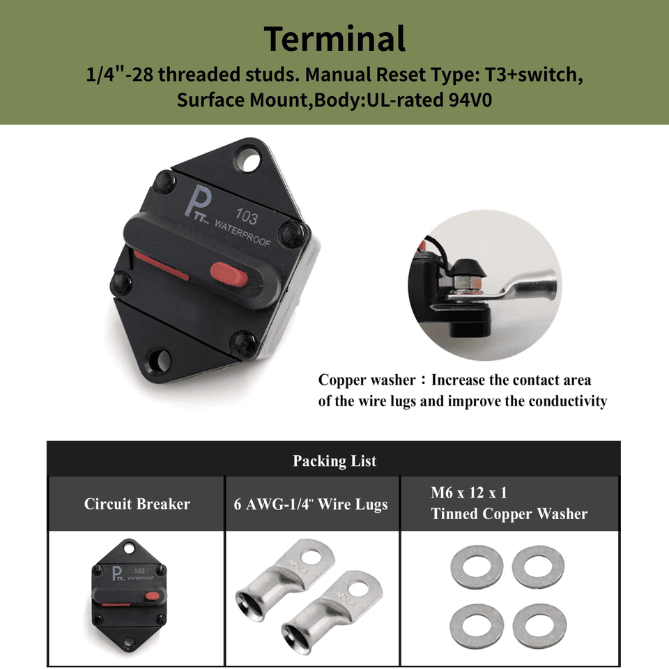 Terminal:1/4 "-28 pernos roscados