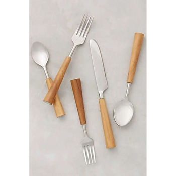 Cubiertos de fiesta, cubiertos, cubiertos, utensilios de cocina, mesa con mango de madera, vajilla, artículos de comedor, cubiertos de acero inoxidable