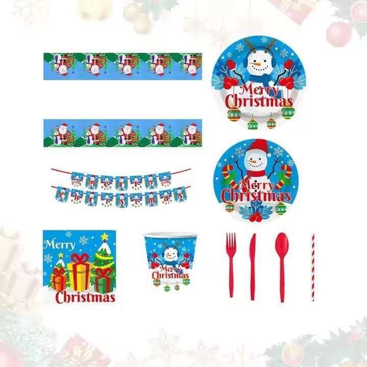 Juego de cubiertos de plástico de 10 piezas con estampado navideño azul para celebraciones festivas