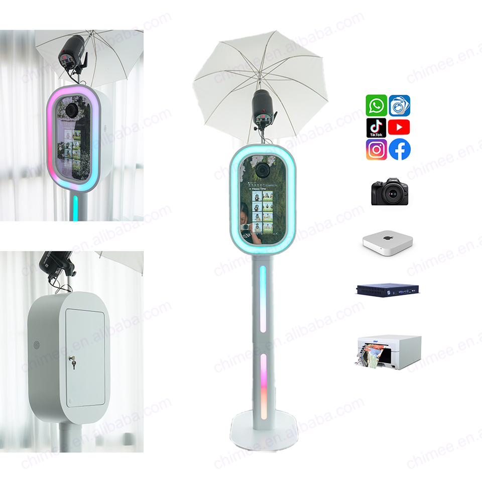 Party Events Photo Machine Oval DSLR Photo Booth Mirror Photo Booth con pantalla táctil LCD de 13,3 "Flash Photo Booth Metal Shell
