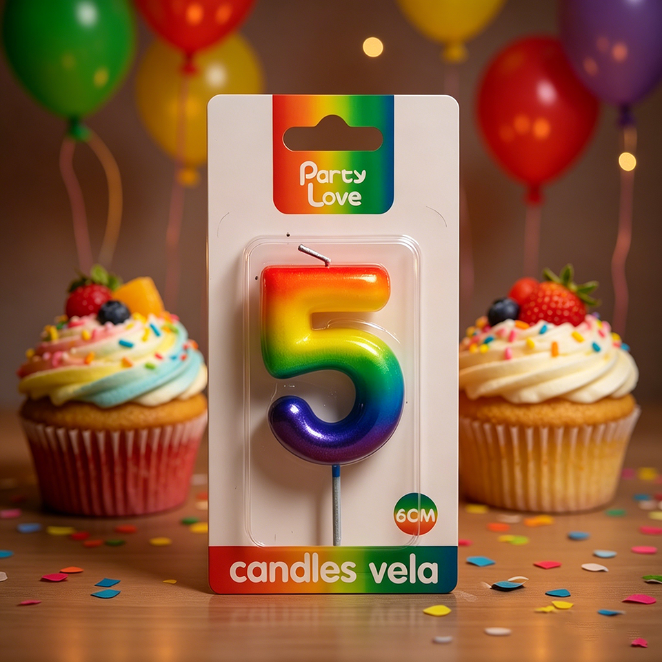 Vela de Cumpleaños con Número 5, 6 cm, Color Arcoíris, para Fiestas