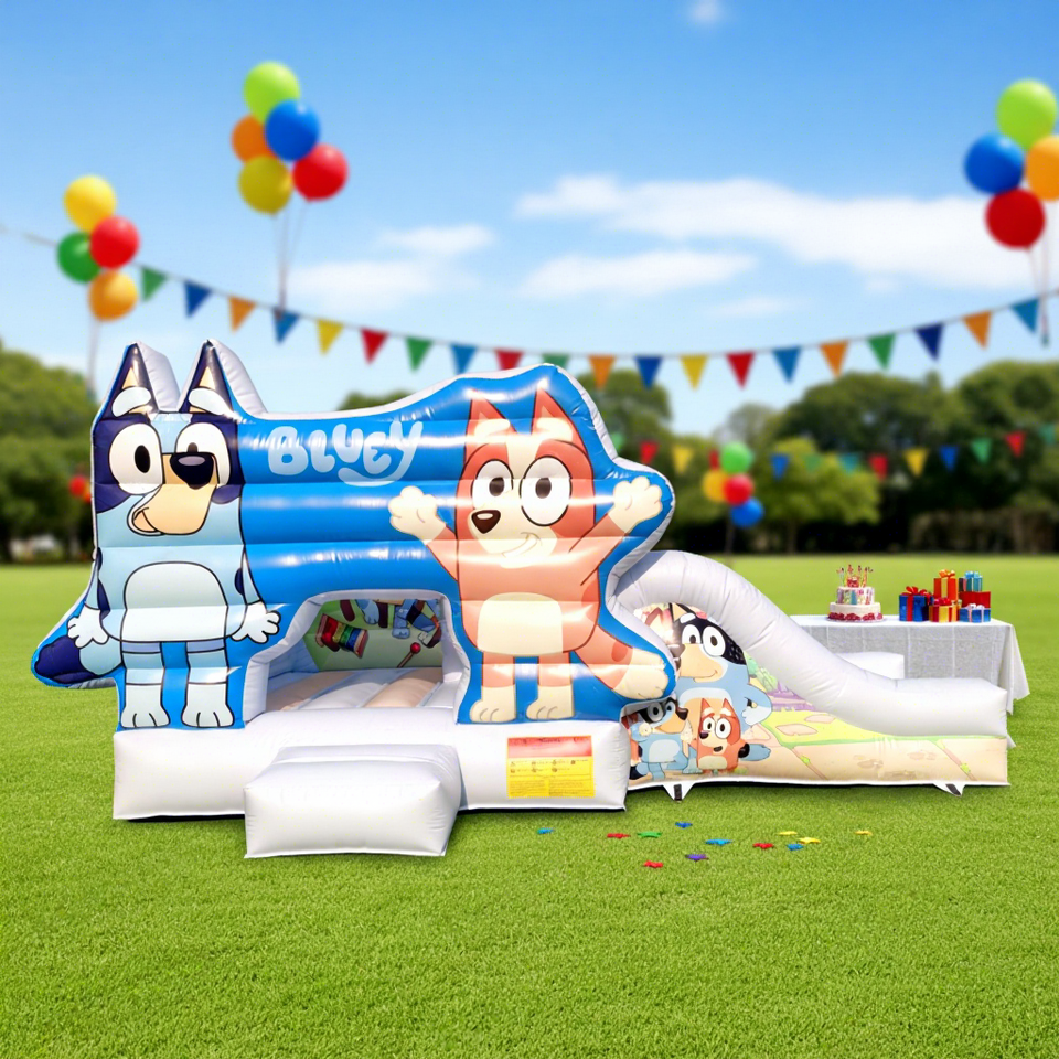 Castillo Inflable Azul con Tobogán, de Lona de PVC de 0.55mm, para Fiestas y Eventos al Aire Libre