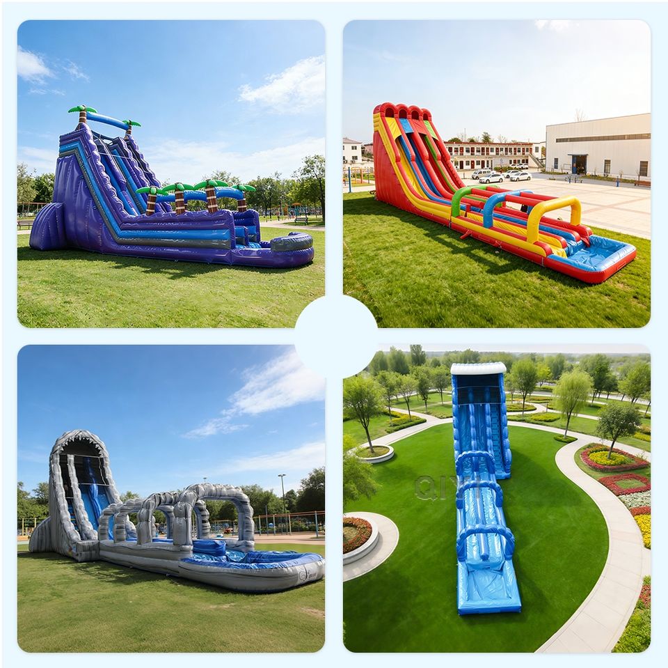 Alquiler para Fiestas: Tobogán Acuático Inflable Gigante de Doble Carril, Tipo Luna Llena, para Adultos, Comercial, 20 pies