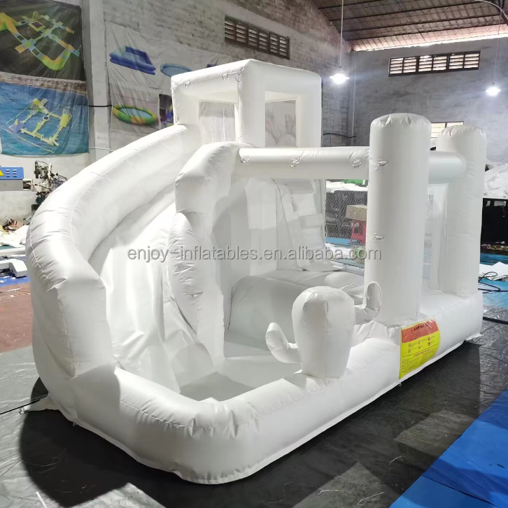 Gorila blanca de alquiler de fiestas con pozo de bolas y tobogán Castillo inflable 13 'x 13' Adultos Toda la boda blanca para casa de rebote 6x6