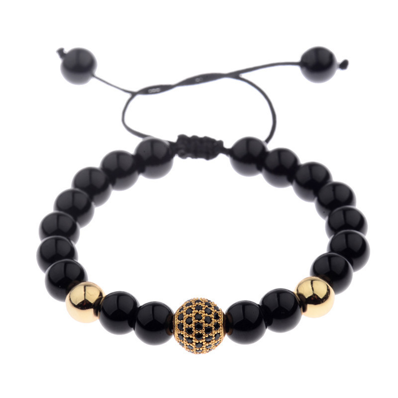 Nombre o palabras:8mm Black Natural Stone Elastic Woven Bracelet