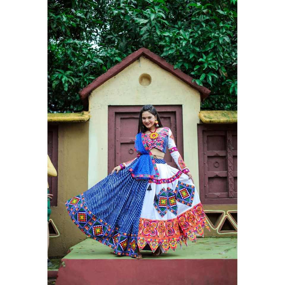 Conjunto de Ropa de Fiesta para Parejas, Estampado Digital en Muselina, en Azul y Blanco