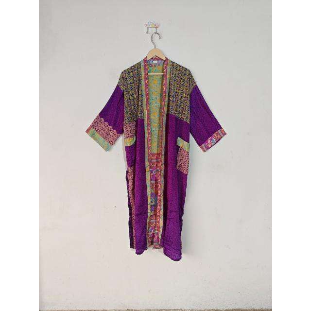 Kimono de seda reciclada con estampado Floral para fiesta de verano, ropa de dormir de maternidad, ropa de playa, cubierta de Bikini, bata para uso en Hotel