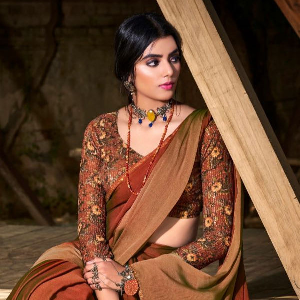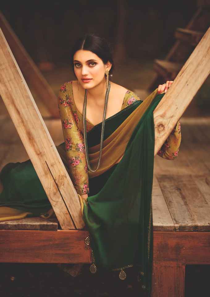 Sari de Fiesta con Trabajo de Lentejuelas, Blusa de Diseñador, Ropa Tradicional, Informal, Funcional, Combinación de Colores Hermosos y Modernos