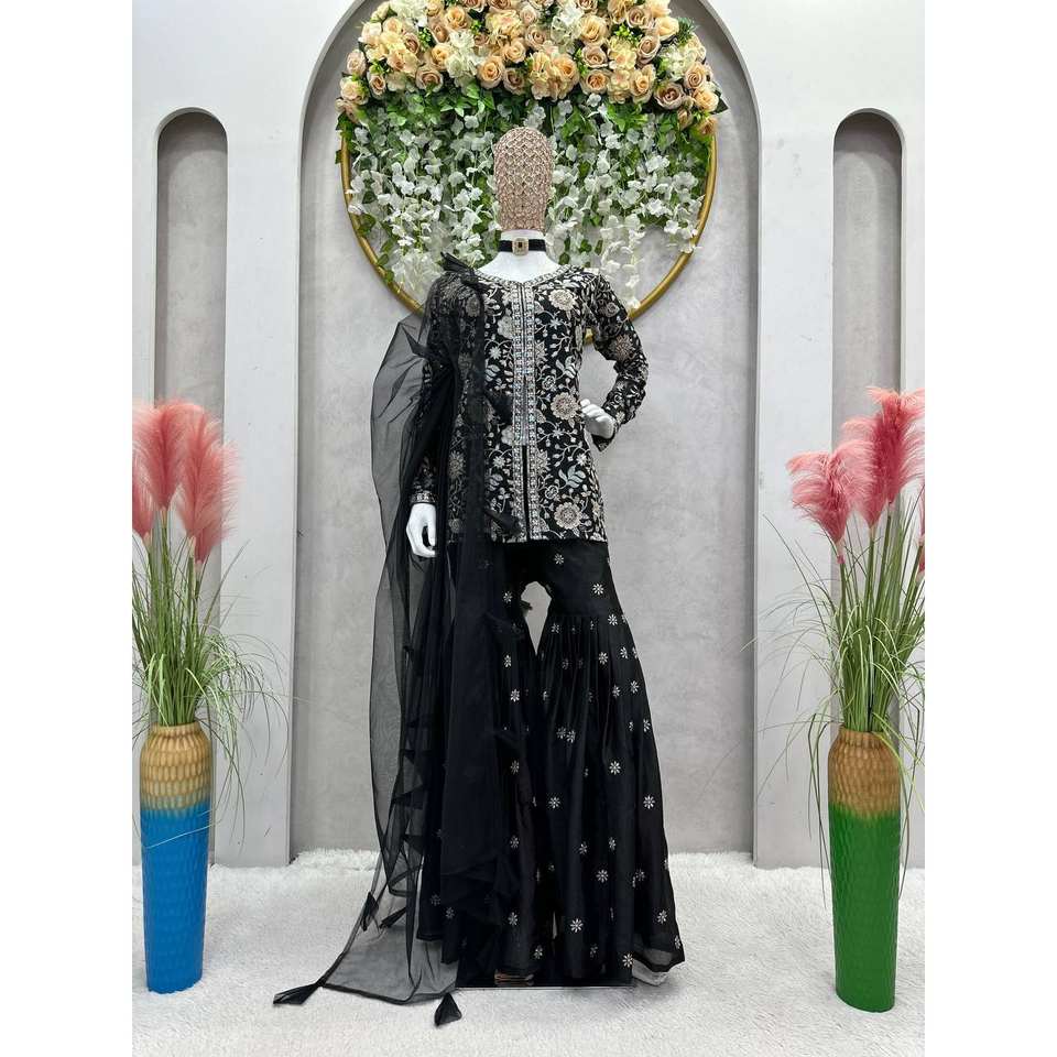 Party Wear Top-Bottom and Dupatta Set XL Tamaño con hilo y trabajo de secuencia para un aspecto elegante
