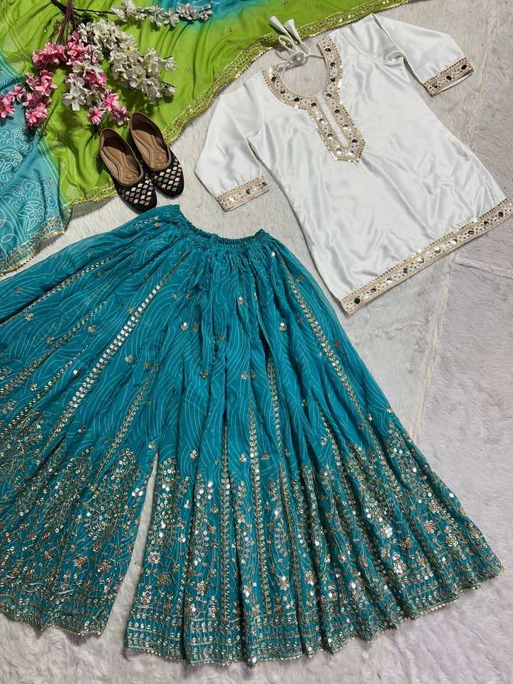 Dhotis de Seda Georgette Blancos para Fiesta con Bordado y Lentejuelas