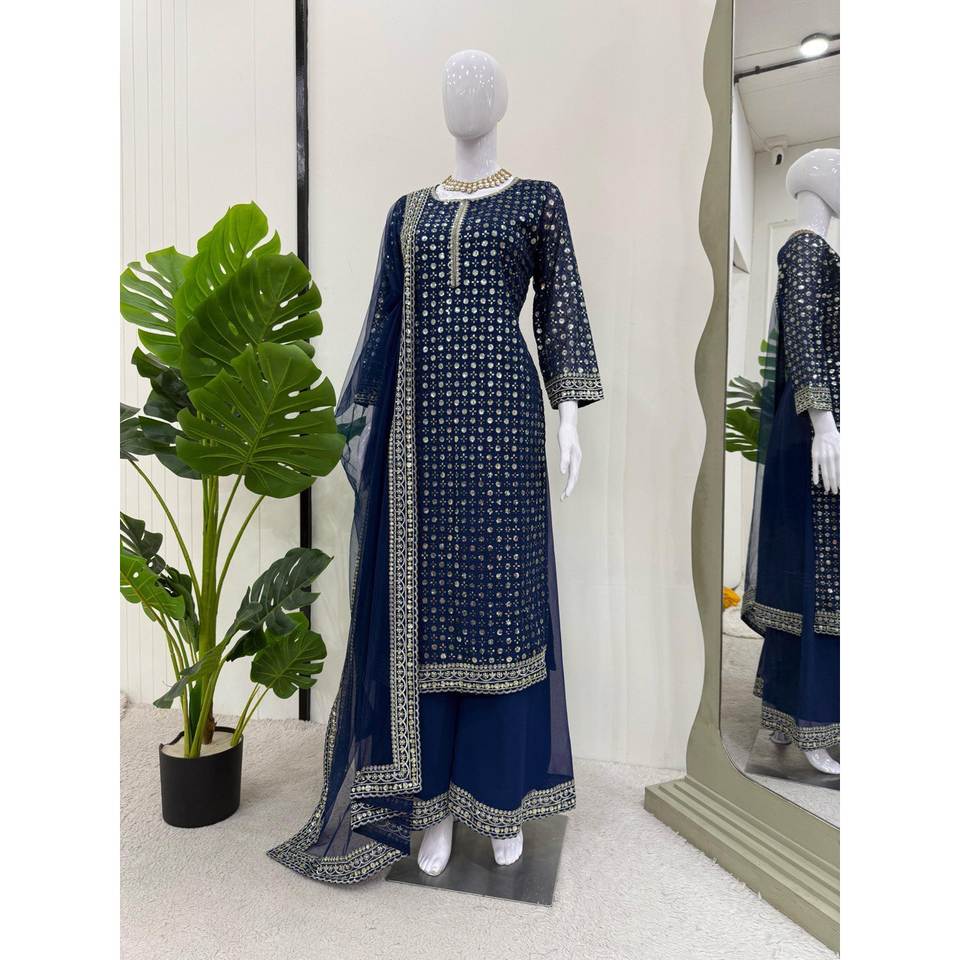Conjunto de traje de talla XL para fiesta con hilo y trabajo de secuencia para un aspecto elegante