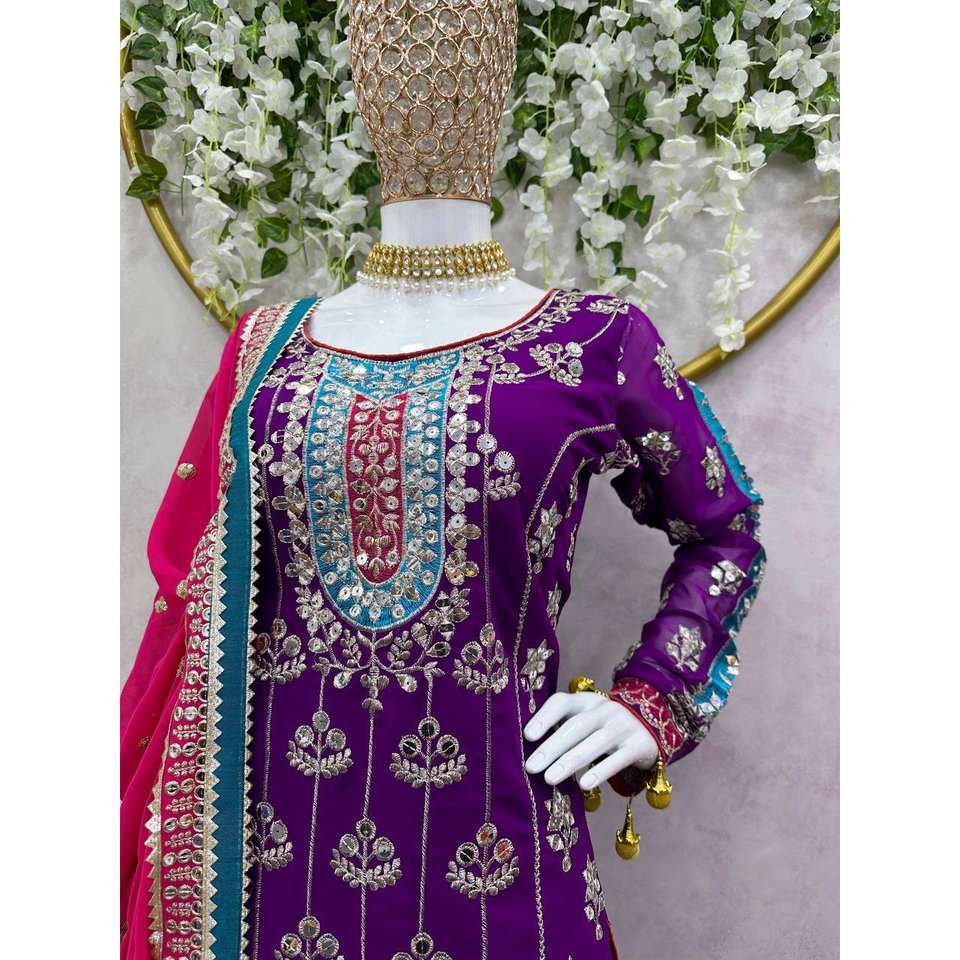 Conjunto de traje de talla XL para fiesta con hilo y trabajo de secuencia para un aspecto elegante