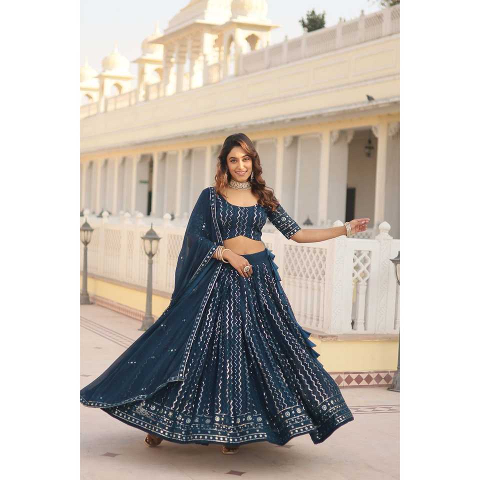 Ropa de fiesta Trabajo bordado e hilo Trabajo bordado Lehenga Choli con Dupatta. KA-5031-