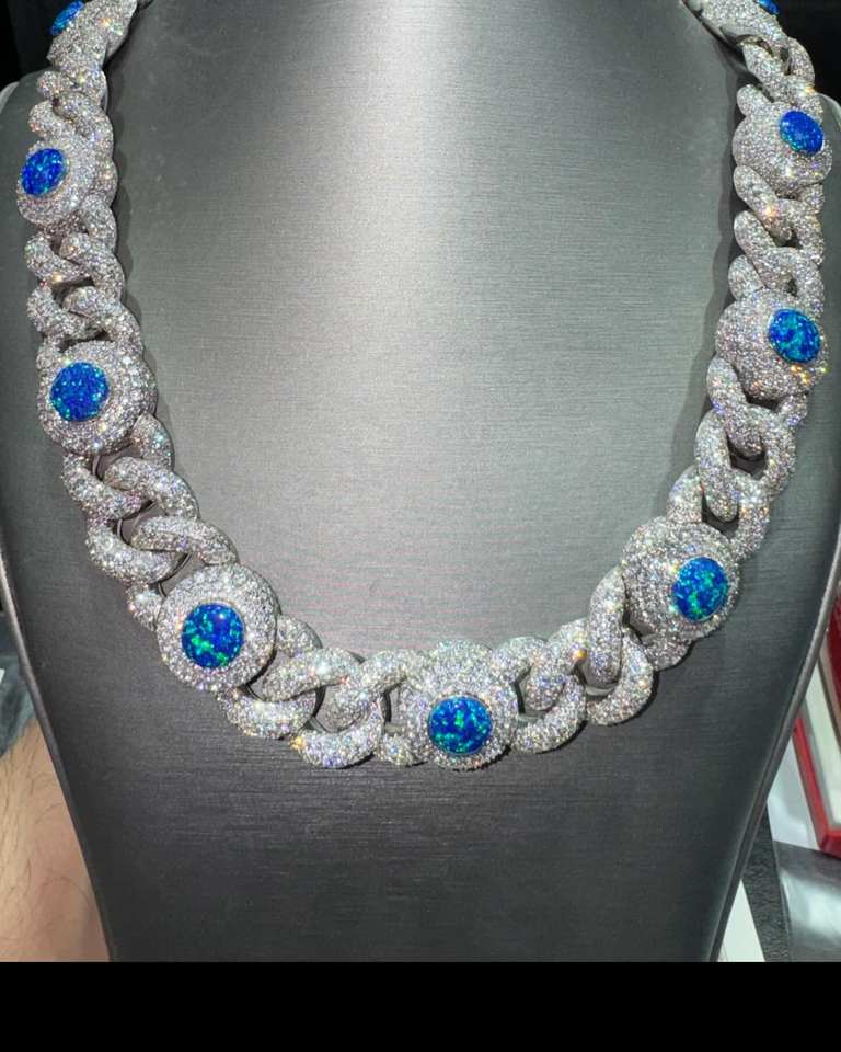 Probador de diamantes GRA Hip Hop S925 Silver Iced Bling 3 filas 14mm-20mm VVS Moissanite Cadena de eslabones cubanos para hombres