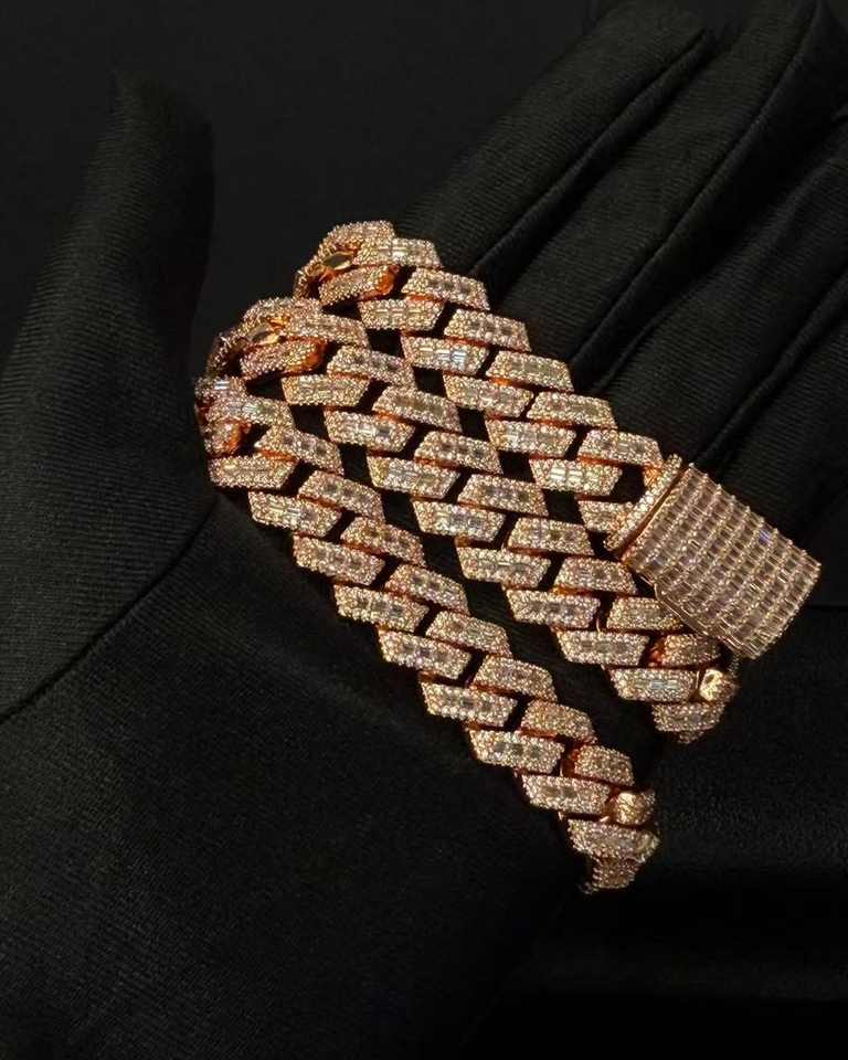 Cadena Cubana de Plata 925 con Moissanita, Chapada en Oro Rosa y Rodio, Estilo Hip Hop Iced Out, Pasa Prueba de Diamantes, Lujo para Boda y Compromiso