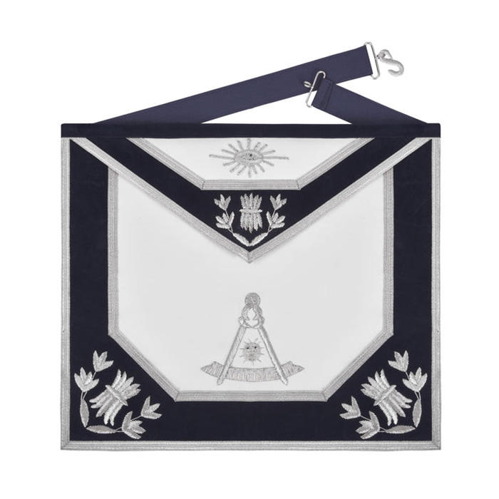 Past Master Blue Lodge Delantal Bordes de terciopelo azul marino y bordado a mano de Lingotes de plata